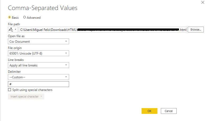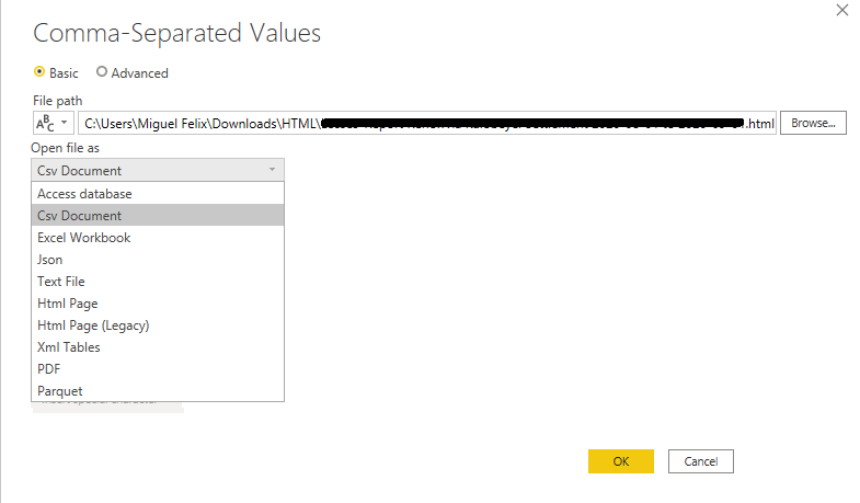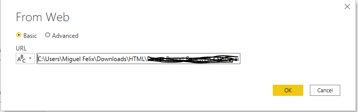 Podem vocês estar a pensar mas esta ligação web apenas serve para paginas de internet, afinal mesmo na documentação do Power BI os exemplos utilizados são para páginas de internet. No entanto este tipo de ligação o que pede é um URL em formato texto o que pode ser uma página de Internet ou um ficheiro local.