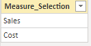SELECTEDVALUE ( Measure_Category_Selection[Measure] ) = "Cost",