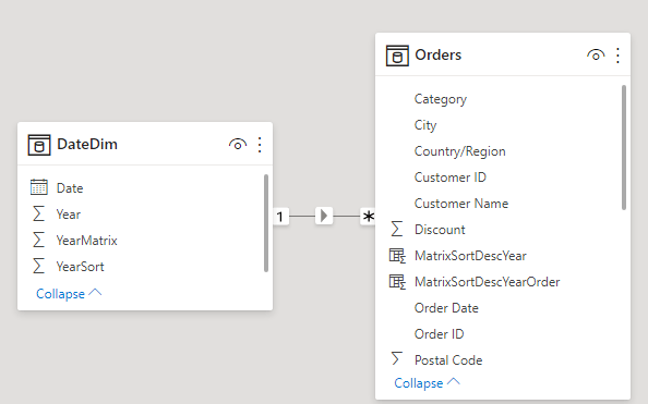 Sales Measure Table = UNION(DISTINCT(DateDim[Year]) , ROW("Year", "Sales"))