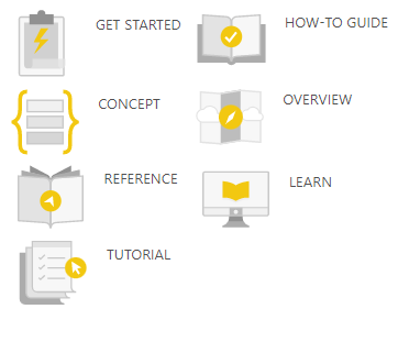 Toda a documentação está identificada visualmente permitindo perceber qual a tipologia de conteúdo da página