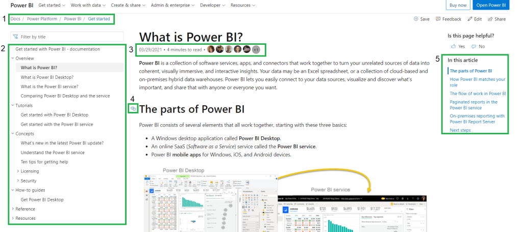 Na página principal da documentação, podemos aceder através da ligação do Power BI ou da Power Platform.