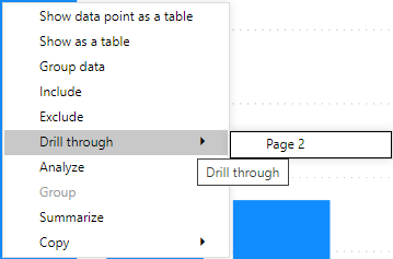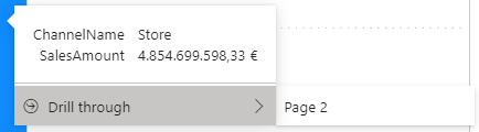 Na página “principal” o acesso ao drill through apenas é possível nas visualizações que tem associados os campos que foram utilizados na página de detalhe. A opção fica disponível de uma de três formas: