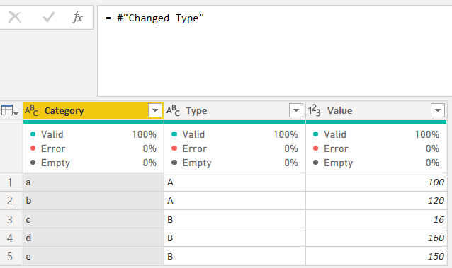 Se tomarmos a tabela abaixo como exemplo, vamos então utilizar a nova formula para criar um ranking do Value baseado na Category.