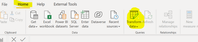 2- Abrir o Power Query: Separador “Home” -> Transform data