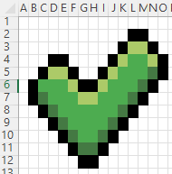 Ao mudarmos os códigos de cores pelas correspondentes cores, e após alguns ajustes das colunas ficamos com um cópia exata da nossa imagem dentro das células do Excel.