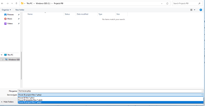 Depois da instalação devemos abrir a nossa pasta de projetos de Power BI: