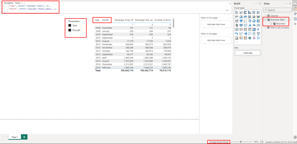Depois de gravarmos o modelo podemos verificar que a utilização da tabela calculada é igual aos Field Parameters criados no Power BI Desktop e o nosso modelo continua a funcionar em Direct Lake: