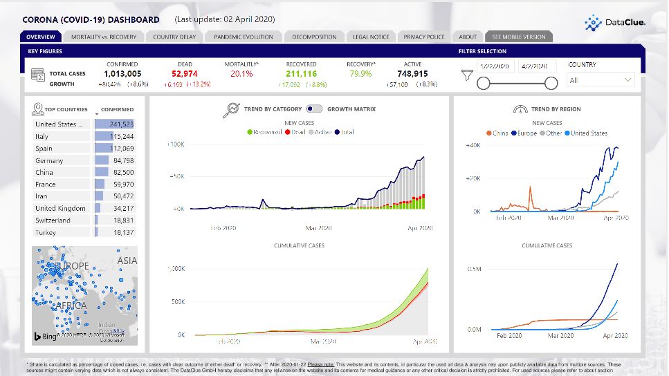 No seguimento do meu post sobre o que está a ser feito com Power BI e a informação disponível sobre o COVID 19 foi publicado no dia 31 de Março no Blog do Power BI o artigo: