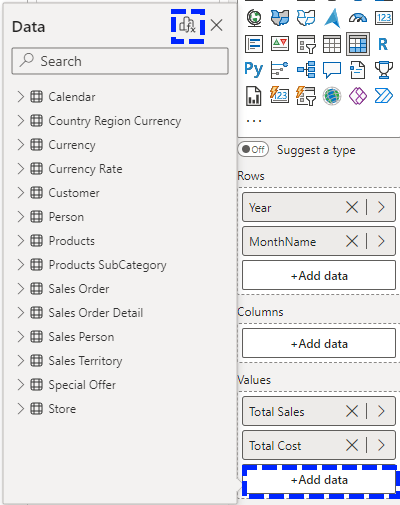 É importante referir que estes cálculos apenas estão disponíveis na visualização onde os criamos, não existem no modelo, e se formos a procura do mesmo no nosso modelo não o iremos encontrar: