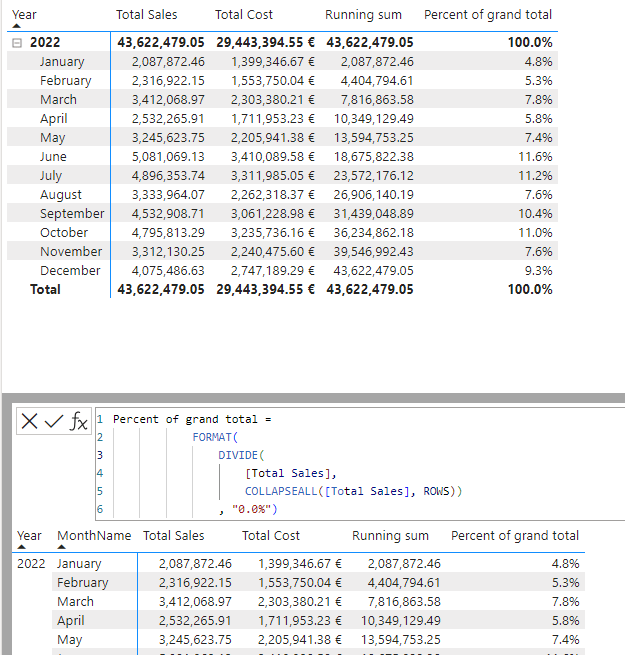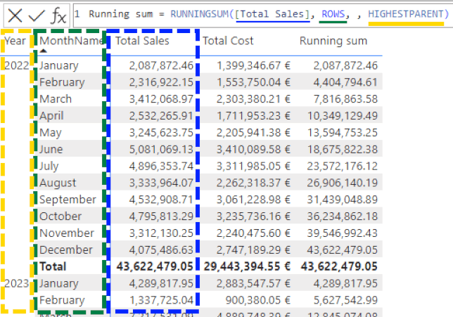 Todas estas fórmulas permitem-nos fazer cálculos avançados com uma sintaxe simples vamos por exemplo pegar no exemplo do total cumulativo: