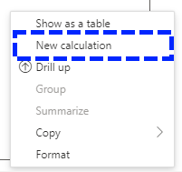 A nova opção encontra-se disponível no separador Calculations, através do menu de inserção de campos, ou botão do lado direito num visual: