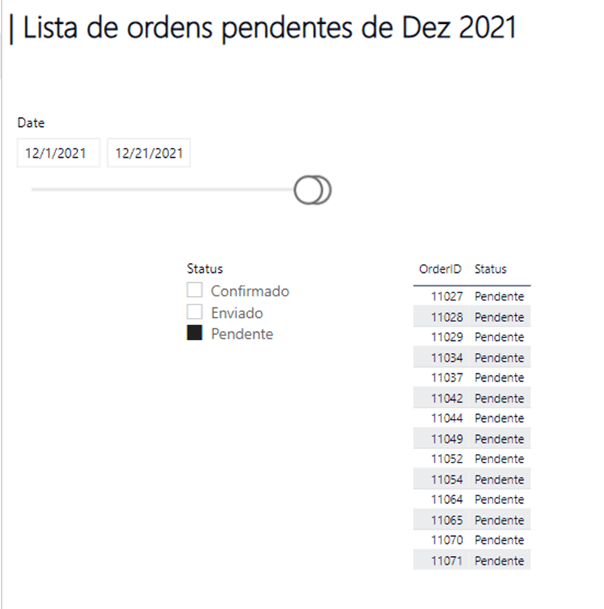 Os dados para enviar são dados simples, um ID de venda e a descrição do seu estado (neste caso apenas os pendentes) .